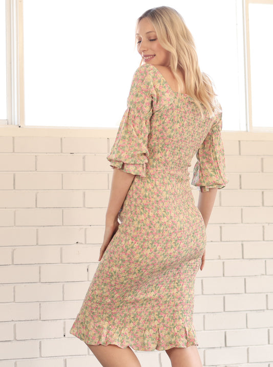 Alethea Long Sleeve Frilled Sage Green Bodycon Maternity Dress