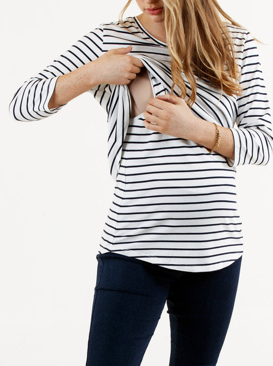 Bamboo Stripe Long Sleeve Maternity and Nursing Top