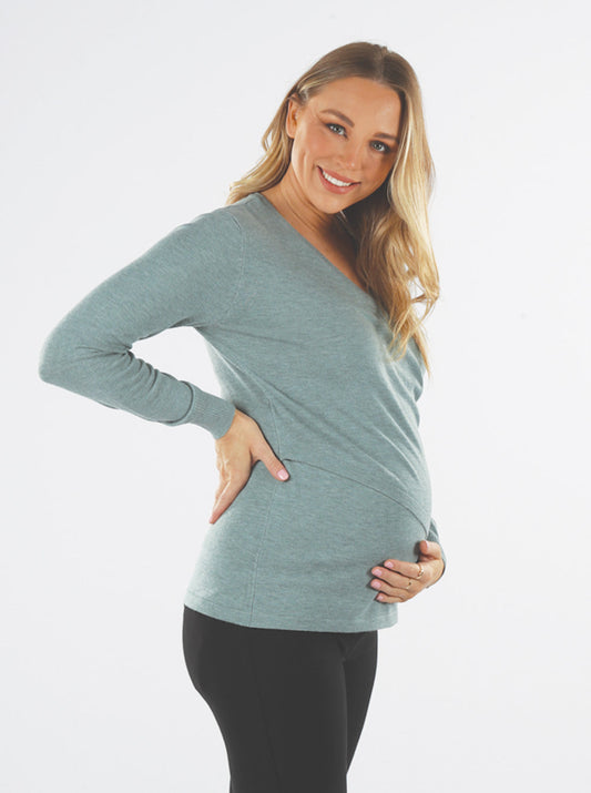 Maternity Crossover Nursing Long Sleeve Top in Sage Green