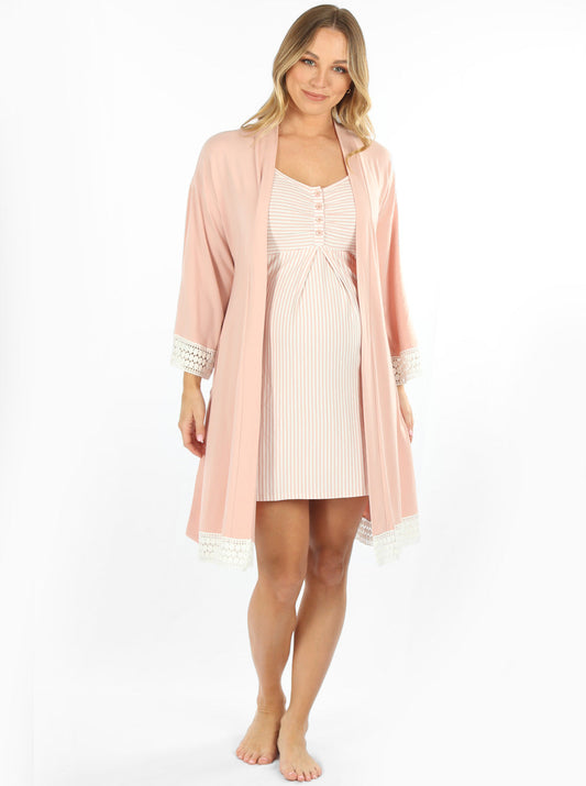 Hospital Pack: Nursing Dress + Robe + Free Baby Wrap - Pink Bamboo